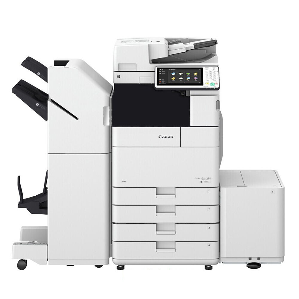 The Canon imageRUNNER ADVANCE 4545/4535/4525/4551 is a black‑and‑white multifunction printer built for enterprise and medium‑to‑large office environments. This 4‑in‑1 device (print/copy/scan/optional fax) delivers fast print speeds ranging from 25 ppm to 51 ppm and supports up to A3‑size documents, making it ideal for high‑volume business reports, contracts, administrative files, and departmental workflow processing.