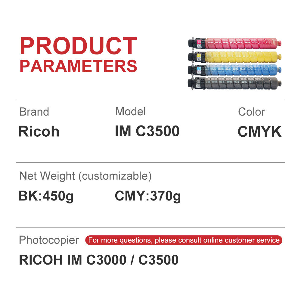 Kolit KLT-C3500/3503; RICOH IMC3500 toner cartridge; RICOH MPC3503 toner; High Yield CMYK toner; Japan original factory powder toner; MPS special toner cartridge; RICOH copier consumables; Low waste powder rate toner
