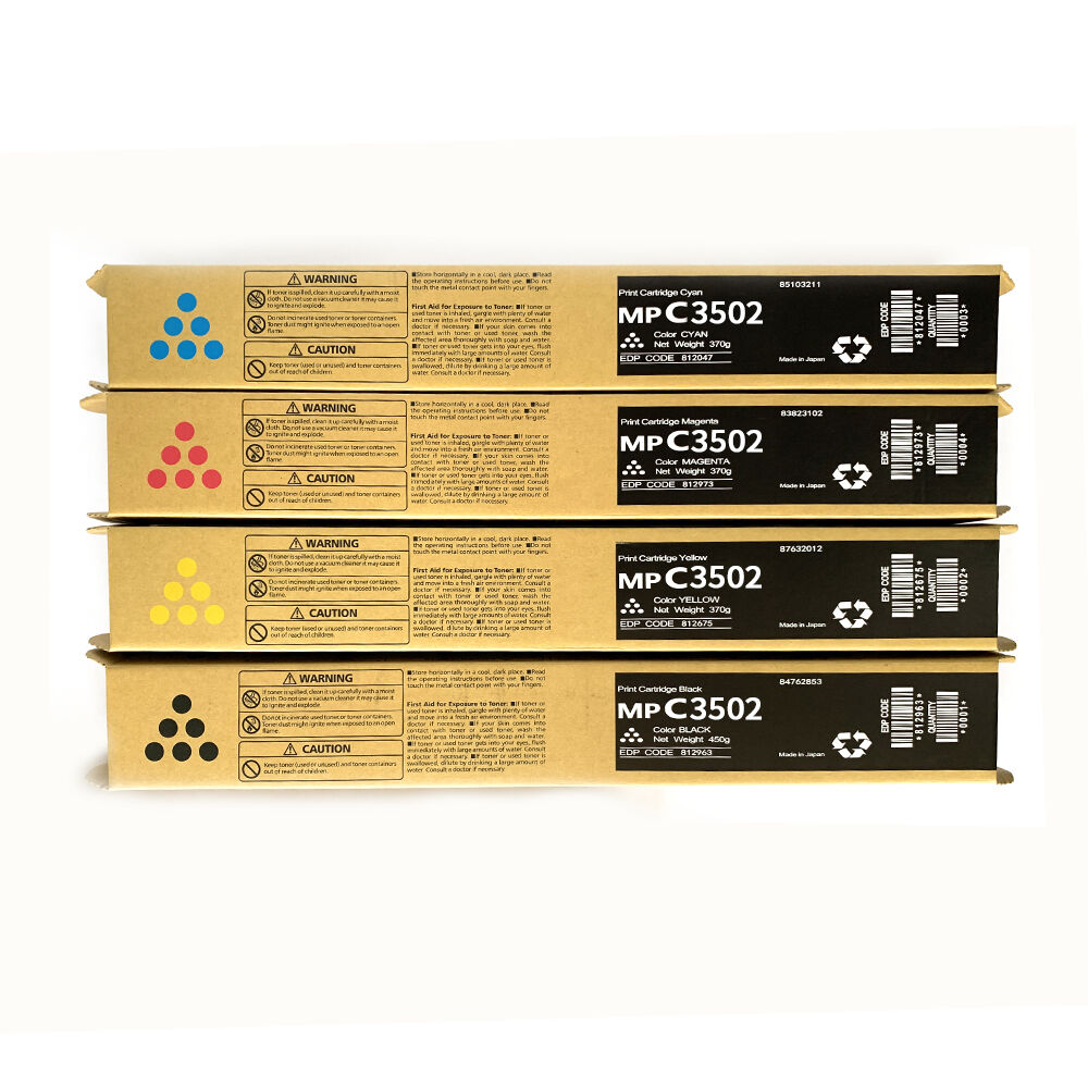 This OEM toner cartridge is available in four independent standard colors: Black (K), Cyan (C), Magenta (M) and Yellow (Y), supporting separate single-color purchase and complete four-color set purchase, flexibly catering to diverse office usage scenarios and personalized procurement needs of different users. The filled original Ricoh toner features ultra-fine and uniform particles (strictly controlling particle size distribution to ensure printing clarity), optimized fixing performance and full color restoration capability, ensuring that every printed page delivers clear and sharp black text, deep and saturated blackness, as well as vivid, layered and non-distorted color graphics, with no fading, no powder dropping, no blurring, no streaks or white lines during continuous printing. It perfectly matches the printing resolution of the compatible Ricoh models, presenting delicate and clear printing details—consistent with the high-resolution output requirements of Ricoh entry-to-mid-range color multifunction printers.